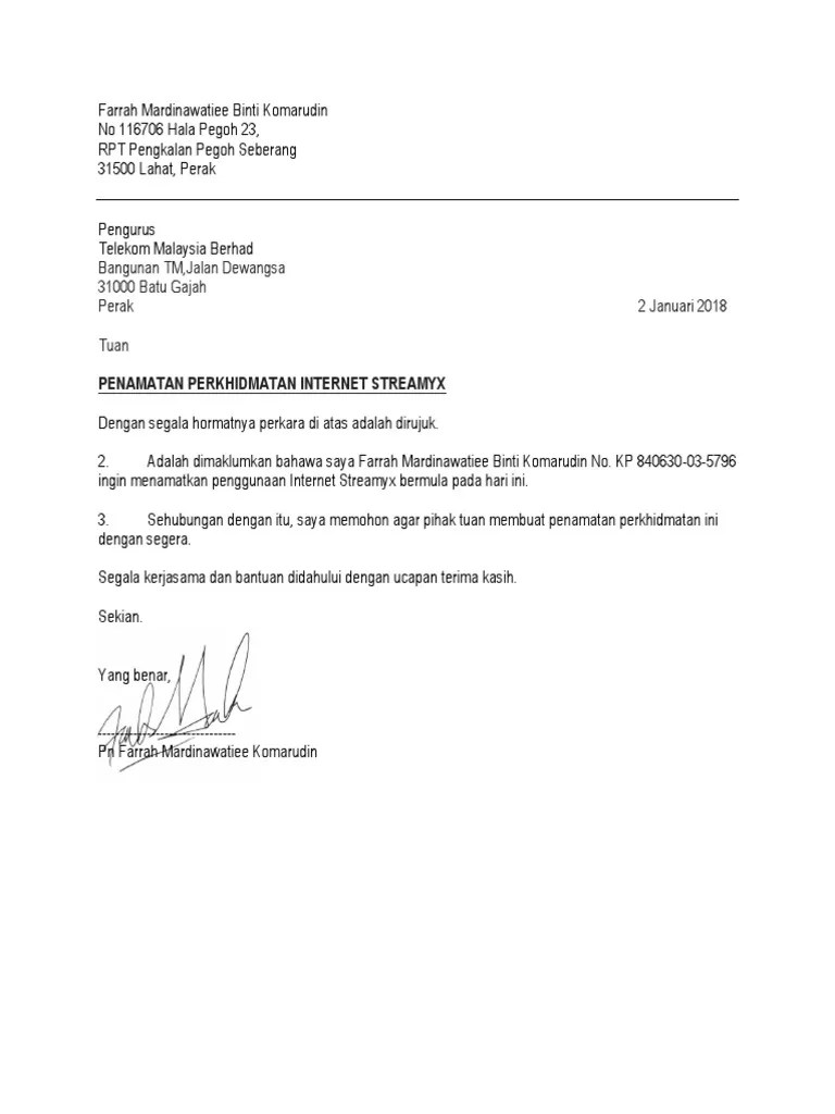 Penamatan perkhidmatan contoh surat notis pemberhentian kerja dari majikan. Contoh surat penamatan perkhidmatan astro. Penamatan perkhidmatan berdasarkan surat tawaran kerja. Contoh surat penamatan kontrak sewa rumah situs properti indonesia. View contoh surat penamatan perkhidmatan staf dalam tempoh percubaan.pdf from sociology misc at inti international college subang. Notis penamatan adalah tertakluk kepada akta kerja 1955 dan . Mesyuarat dan bengkel guru penyelaras bestari ict kelompok pkg mekasar 2013 contoh surat penamatan langganan internet.