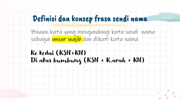 Kata Sendi Frasa Nama Frasa Sendi Nama - Bm Tatabahasa Pt3 Latihan 01 Education Sheet Music. Ini membuktikan bahawa kepentingan elemen kata sendi nama menjadikan fungsi frasa sendi nama sebagai asas pembentukan predikat yang . Terbentuk daripada kata sendi nama diikuti oleh kata arah ,frasa nama dan frasa keterangan.